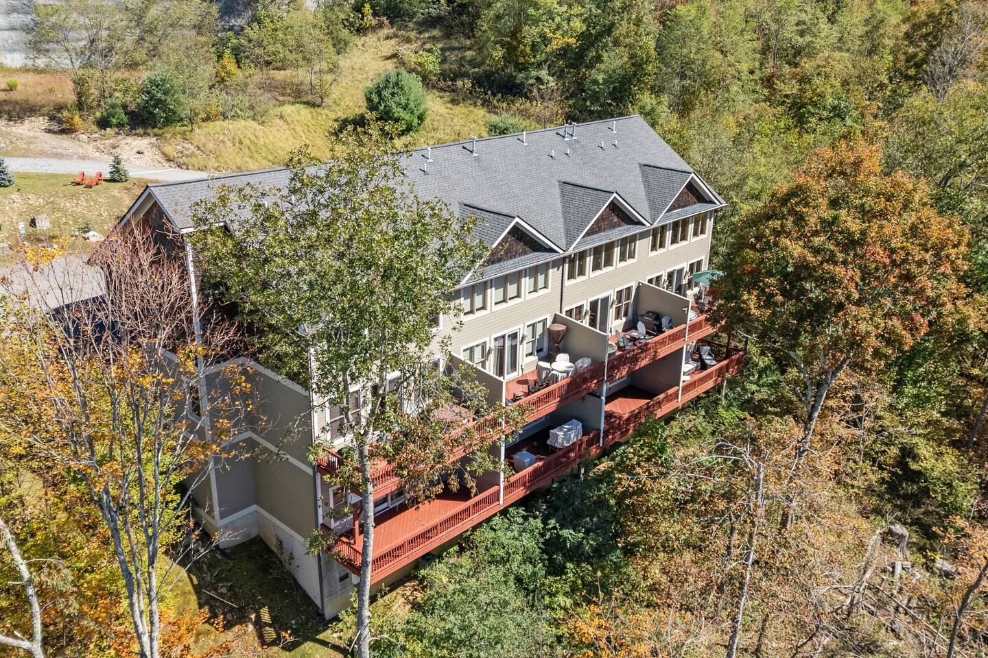 Escape to the cozy Wolf's Den at over 4,200 feet, where fall foliage paints the Blue Ridge Mountains in reds and golds! Relax in the hot tub amid crisp autumn breezes or by the fireplace as snowflakes dance. Curl up with a good book by the window, soaking in serene mountain views while planning powder days. Whip up hearty meals in the gourmet kitchen, then enjoy arcade games, foosball, or home theater nights. After skiing or snowboarding at Hatley Pointe, sink into plush beds. Book now!