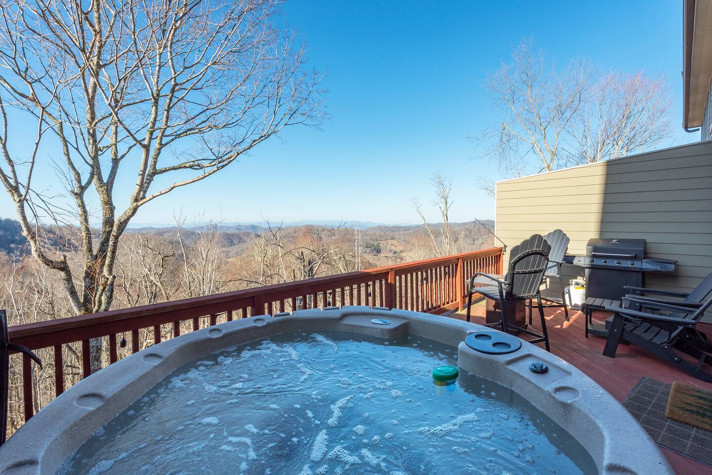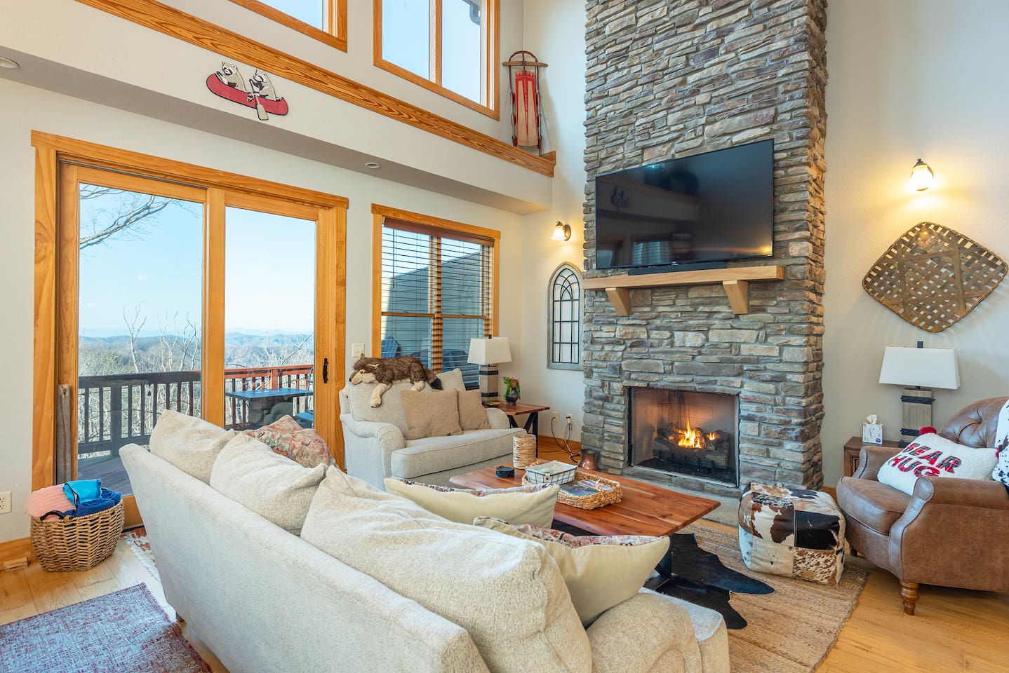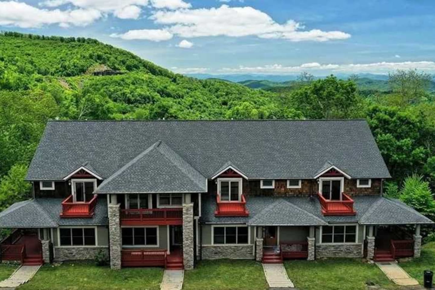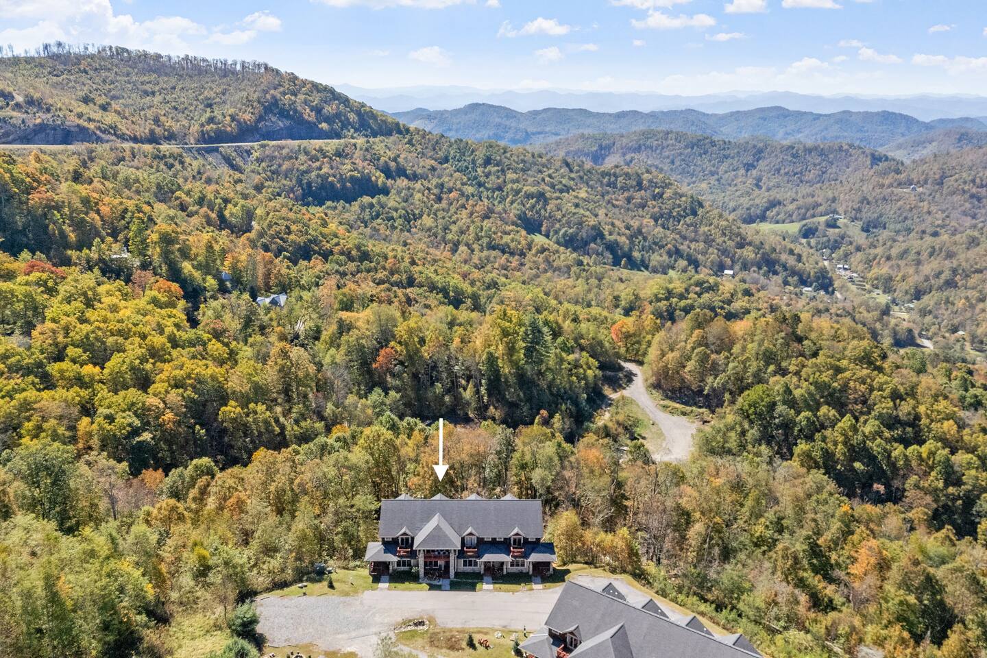 🏔️ 4BR Mountaintop Retreat | Hot Tub • Theater • Games • Near Skiing Escape to our 4BR / 3BA luxury mountaintop haven at 4,200+ feet, where sweeping Blue Ridge Mountain views steal the show year-round. In fall, the mountains glow in fiery reds and golds. In winter, snowflakes drift past twinkling lights as ski season comes alive at Hatley Pointe Ski Resort—just 5 minutes away. Whether you’re soaking in the hot tub under the stars, cozying up by the stone fireplace, or hosting epic movie nights, this spacious retreat is built for unforgettable mountain memories. 🛏️ Sleeping Arrangements (Comfort for Everyone) Top-Floor Primary Suite King bed Private balcony with panoramic mountain views En-suite bathroom Smart TV Main-Floor Queen Bedroom Queen bed with Smart TV Option for private bathroom via hallway door Lower-Level Bunk Haven Queen bed + full/twin bunk beds Private bathroom Smart TV Private deck—perfect for stargazing Additional Private Bunk Room Ideal for kids or extra guests Loft Retreat Cozy reading/lounge area Stunning two-story mountain views Great remote-work escape 🎬 Movie Room + Game Night Central Head downstairs for nonstop fun: Home theater with immersive viewing Foosball table Golden Tee arcade machine Bar top for cocktails or mocktails Board games for cozy evenings 🔥 Inviting Living Space Two-story windows framing mountain sunsets and snowy peaks Towering stone gas fireplace Large Smart TV Expansive deck with: Hot tub Gas fire pit Crisp mountain air and star-filled skies 🍽️ Gourmet Kitchen & Dining Cook and gather with ease in the fully equipped kitchen: Spacious island seating Massive dining table for group meals Everything you need for hearty stews, holiday feasts, or mulled cider nights 🌲 Location Highlights Leaf-peeping hikes, ziplining, and trout fishing nearby Hatley Pointe Ski Resort – 5 minutes away Easy access to: Asheville Weaverville Mars Hill Wolf Provisions General Store (5 min): coffee, hot meals, ice cream, essentials Scenic drives along the Blue Ridge Parkway Bristol Motor Speedway ~1 hour away 🚗 Important Travel Notes 4WD recommended during snow or icy conditions Secure trash in locked bins to deter wildlife ✨ Book now for a luxurious mountain escape filled with views, comfort, and fun—perfect for fall foliage, winter adventures, and holiday gatherings