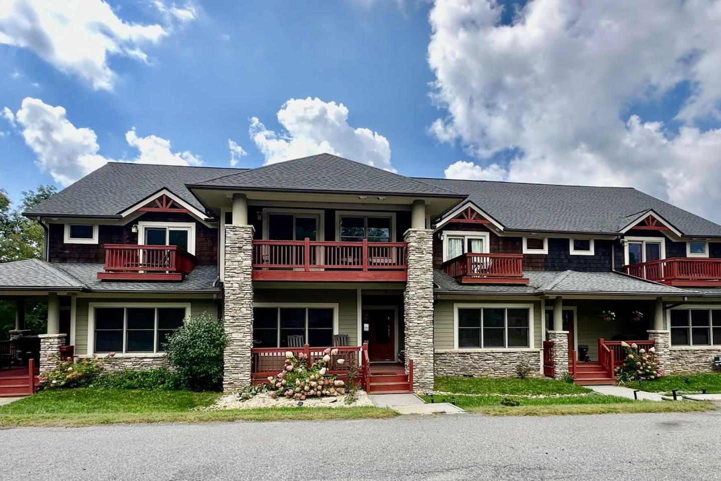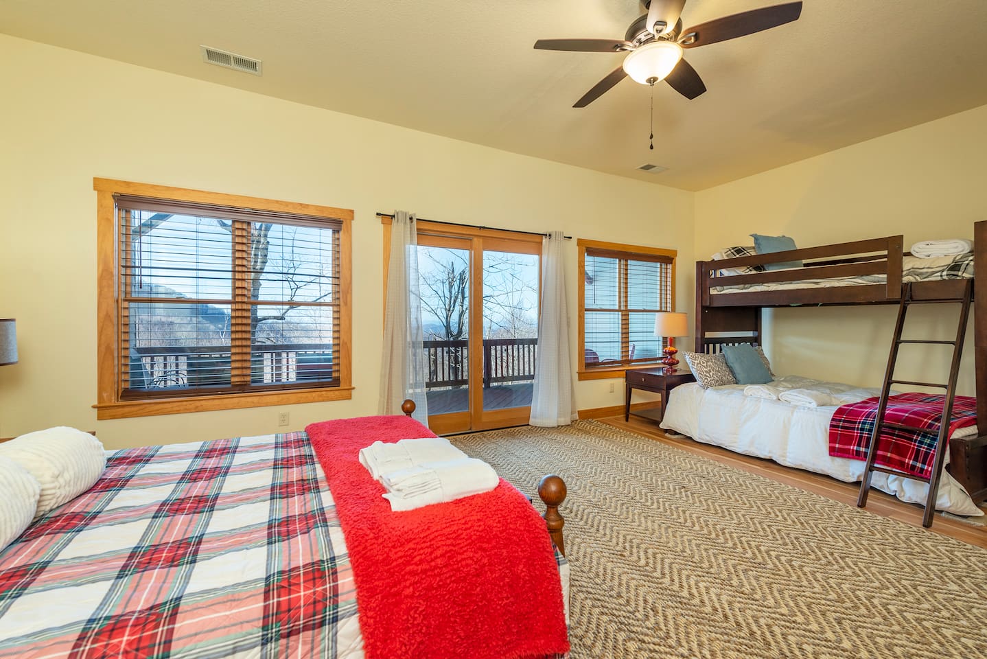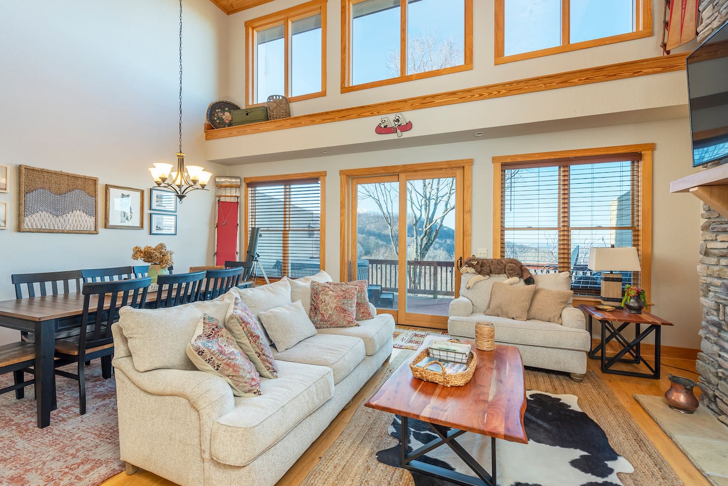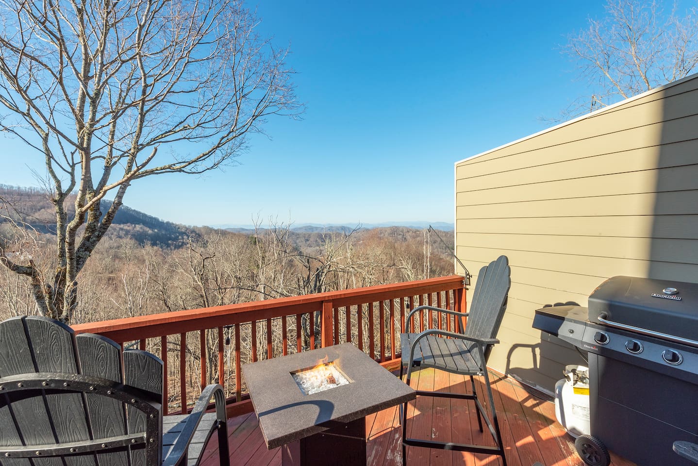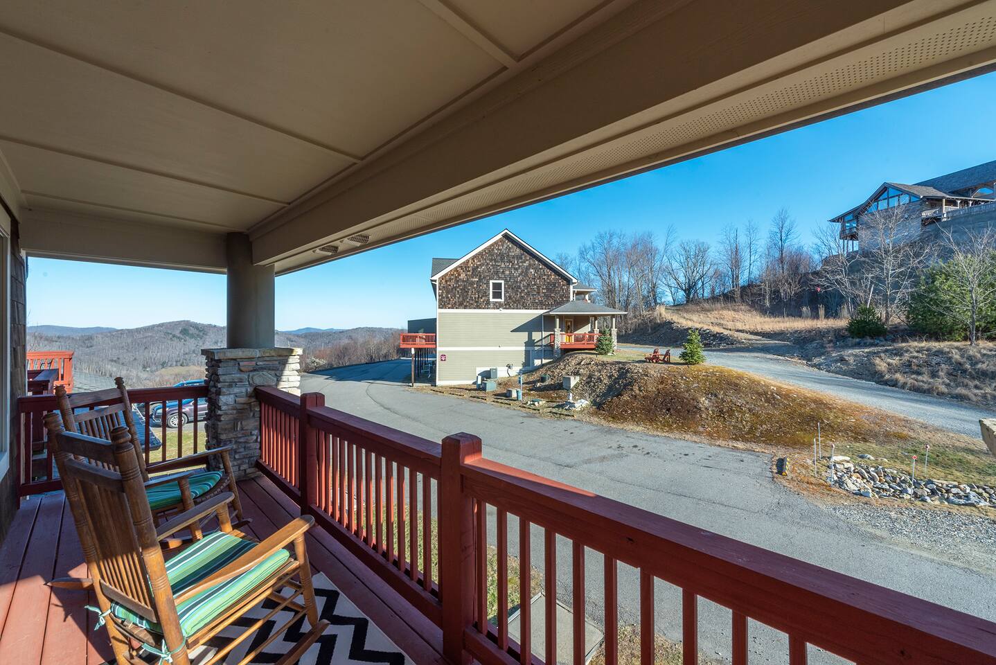 🏔️ 4BR Mountaintop Retreat | Hot Tub • Theater • Games • Near Skiing Escape to our 4BR / 3BA luxury mountaintop haven at 4,200+ feet, where sweeping Blue Ridge Mountain views steal the show year-round. In fall, the mountains glow in fiery reds and golds. In winter, snowflakes drift past twinkling lights as ski season comes alive at Hatley Pointe Ski Resort—just 5 minutes away. Whether you’re soaking in the hot tub under the stars, cozying up by the stone fireplace, or hosting epic movie nights, this spacious retreat is built for unforgettable mountain memories. 🛏️ Sleeping Arrangements (Comfort for Everyone) Top-Floor Primary Suite King bed Private balcony with panoramic mountain views En-suite bathroom Smart TV Main-Floor Queen Bedroom Queen bed with Smart TV Option for private bathroom via hallway door Lower-Level Bunk Haven Queen bed + full/twin bunk beds Private bathroom Smart TV Private deck—perfect for stargazing Additional Private Bunk Room Ideal for kids or extra guests Loft Retreat Cozy reading/lounge area Stunning two-story mountain views Great remote-work escape 🎬 Movie Room + Game Night Central Head downstairs for nonstop fun: Home theater with immersive viewing Foosball table Golden Tee arcade machine Bar top for cocktails or mocktails Board games for cozy evenings 🔥 Inviting Living Space Two-story windows framing mountain sunsets and snowy peaks Towering stone gas fireplace Large Smart TV Expansive deck with: Hot tub Gas fire pit Crisp mountain air and star-filled skies 🍽️ Gourmet Kitchen & Dining Cook and gather with ease in the fully equipped kitchen: Spacious island seating Massive dining table for group meals Everything you need for hearty stews, holiday feasts, or mulled cider nights 🌲 Location Highlights Leaf-peeping hikes, ziplining, and trout fishing nearby Hatley Pointe Ski Resort – 5 minutes away Easy access to: Asheville Weaverville Mars Hill Wolf Provisions General Store (5 min): coffee, hot meals, ice cream, essentials Scenic drives along the Blue Ridge Parkway Bristol Motor Speedway ~1 hour away 🚗 Important Travel Notes 4WD recommended during snow or icy conditions Secure trash in locked bins to deter wildlife ✨ Book now for a luxurious mountain escape filled with views, comfort, and fun—perfect for fall foliage, winter adventures, and holiday gatherings