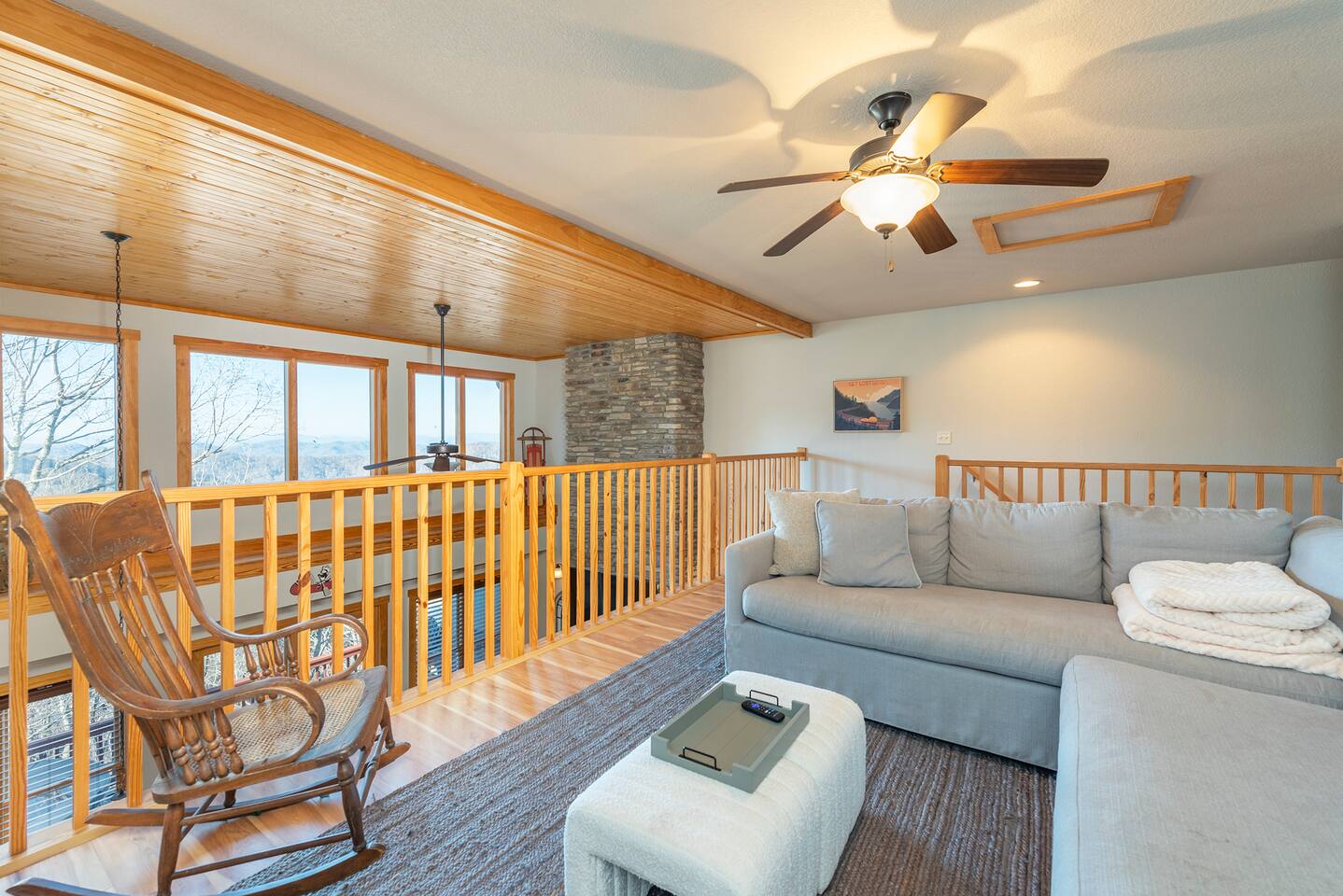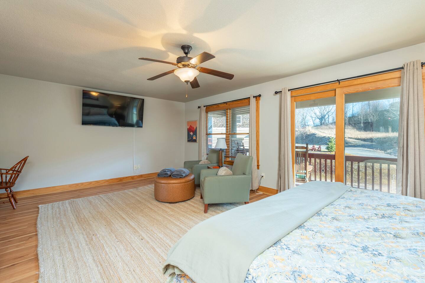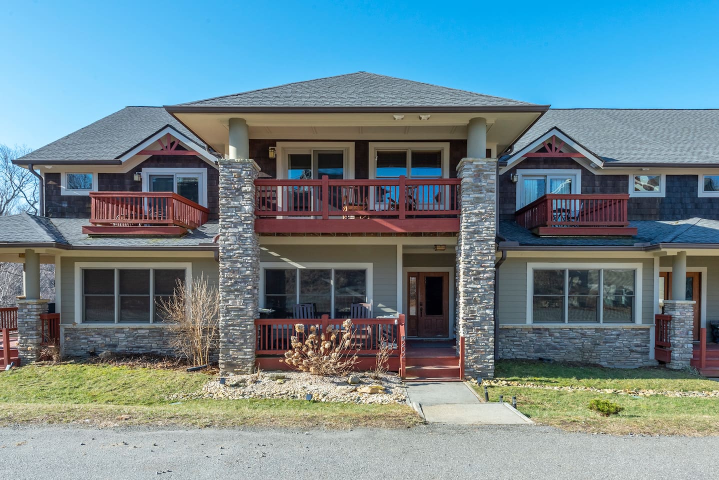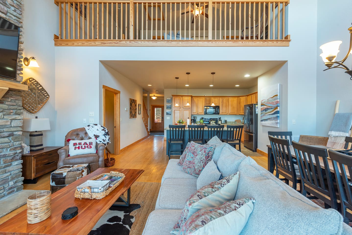 🏔️ 4BR Mountaintop Retreat | Hot Tub • Theater • Games • Near Skiing Escape to our 4BR / 3BA luxury mountaintop haven at 4,200+ feet, where sweeping Blue Ridge Mountain views steal the show year-round. In fall, the mountains glow in fiery reds and golds. In winter, snowflakes drift past twinkling lights as ski season comes alive at Hatley Pointe Ski Resort—just 5 minutes away. Whether you’re soaking in the hot tub under the stars, cozying up by the stone fireplace, or hosting epic movie nights, this spacious retreat is built for unforgettable mountain memories. 🛏️ Sleeping Arrangements (Comfort for Everyone) Top-Floor Primary Suite King bed Private balcony with panoramic mountain views En-suite bathroom Smart TV Main-Floor Queen Bedroom Queen bed with Smart TV Option for private bathroom via hallway door Lower-Level Bunk Haven Queen bed + full/twin bunk beds Private bathroom Smart TV Private deck—perfect for stargazing Additional Private Bunk Room Ideal for kids or extra guests Loft Retreat Cozy reading/lounge area Stunning two-story mountain views Great remote-work escape 🎬 Movie Room + Game Night Central Head downstairs for nonstop fun: Home theater with immersive viewing Foosball table Golden Tee arcade machine Bar top for cocktails or mocktails Board games for cozy evenings 🔥 Inviting Living Space Two-story windows framing mountain sunsets and snowy peaks Towering stone gas fireplace Large Smart TV Expansive deck with: Hot tub Gas fire pit Crisp mountain air and star-filled skies 🍽️ Gourmet Kitchen & Dining Cook and gather with ease in the fully equipped kitchen: Spacious island seating Massive dining table for group meals Everything you need for hearty stews, holiday feasts, or mulled cider nights 🌲 Location Highlights Leaf-peeping hikes, ziplining, and trout fishing nearby Hatley Pointe Ski Resort – 5 minutes away Easy access to: Asheville Weaverville Mars Hill Wolf Provisions General Store (5 min): coffee, hot meals, ice cream, essentials Scenic drives along the Blue Ridge Parkway Bristol Motor Speedway ~1 hour away 🚗 Important Travel Notes 4WD recommended during snow or icy conditions Secure trash in locked bins to deter wildlife ✨ Book now for a luxurious mountain escape filled with views, comfort, and fun—perfect for fall foliage, winter adventures, and holiday gatherings
