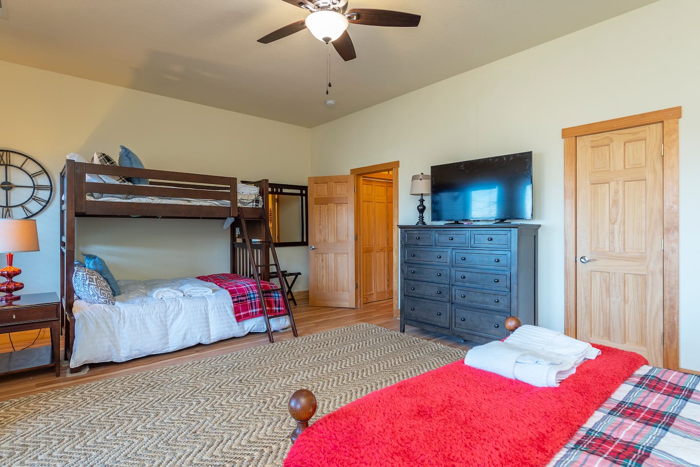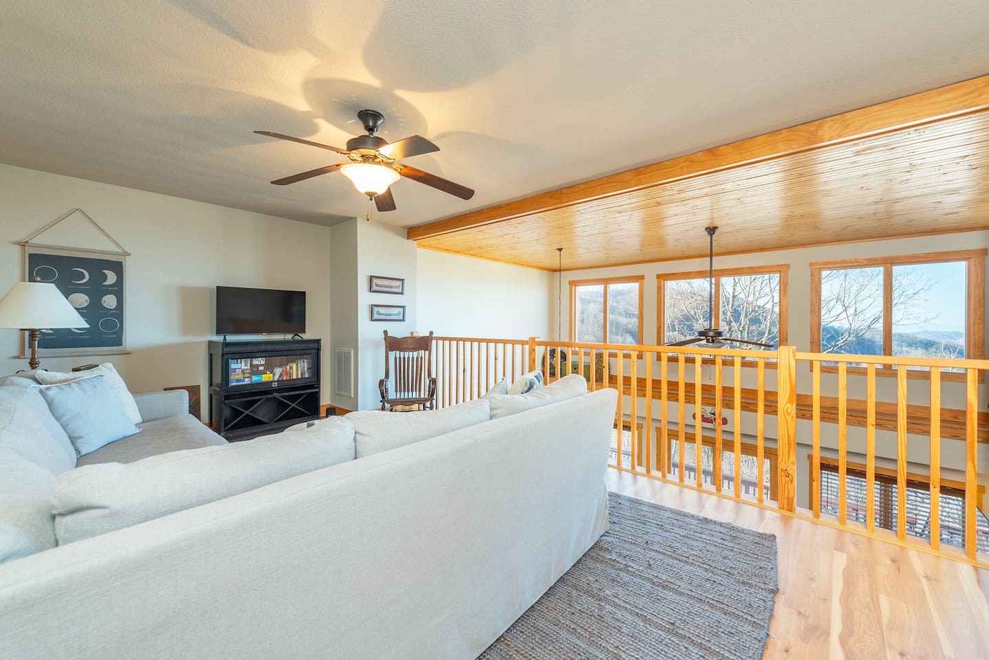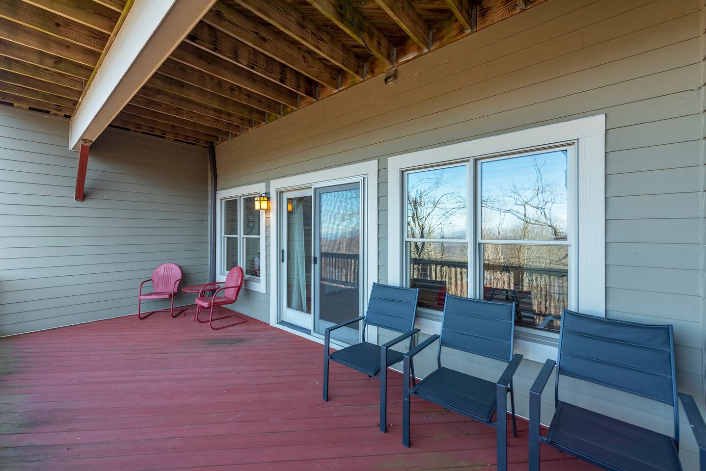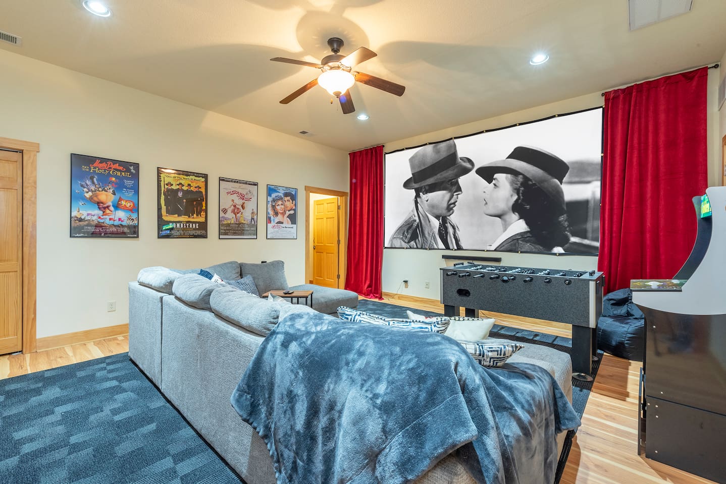 🏔️ 4BR Mountaintop Retreat | Hot Tub • Theater • Games • Near Skiing Escape to our 4BR / 3BA luxury mountaintop haven at 4,200+ feet, where sweeping Blue Ridge Mountain views steal the show year-round. In fall, the mountains glow in fiery reds and golds. In winter, snowflakes drift past twinkling lights as ski season comes alive at Hatley Pointe Ski Resort—just 5 minutes away. Whether you’re soaking in the hot tub under the stars, cozying up by the stone fireplace, or hosting epic movie nights, this spacious retreat is built for unforgettable mountain memories. 🛏️ Sleeping Arrangements (Comfort for Everyone) Top-Floor Primary Suite King bed Private balcony with panoramic mountain views En-suite bathroom Smart TV Main-Floor Queen Bedroom Queen bed with Smart TV Option for private bathroom via hallway door Lower-Level Bunk Haven Queen bed + full/twin bunk beds Private bathroom Smart TV Private deck—perfect for stargazing Additional Private Bunk Room Ideal for kids or extra guests Loft Retreat Cozy reading/lounge area Stunning two-story mountain views Great remote-work escape 🎬 Movie Room + Game Night Central Head downstairs for nonstop fun: Home theater with immersive viewing Foosball table Golden Tee arcade machine Bar top for cocktails or mocktails Board games for cozy evenings 🔥 Inviting Living Space Two-story windows framing mountain sunsets and snowy peaks Towering stone gas fireplace Large Smart TV Expansive deck with: Hot tub Gas fire pit Crisp mountain air and star-filled skies 🍽️ Gourmet Kitchen & Dining Cook and gather with ease in the fully equipped kitchen: Spacious island seating Massive dining table for group meals Everything you need for hearty stews, holiday feasts, or mulled cider nights 🌲 Location Highlights Leaf-peeping hikes, ziplining, and trout fishing nearby Hatley Pointe Ski Resort – 5 minutes away Easy access to: Asheville Weaverville Mars Hill Wolf Provisions General Store (5 min): coffee, hot meals, ice cream, essentials Scenic drives along the Blue Ridge Parkway Bristol Motor Speedway ~1 hour away 🚗 Important Travel Notes 4WD recommended during snow or icy conditions Secure trash in locked bins to deter wildlife ✨ Book now for a luxurious mountain escape filled with views, comfort, and fun—perfect for fall foliage, winter adventures, and holiday gatherings